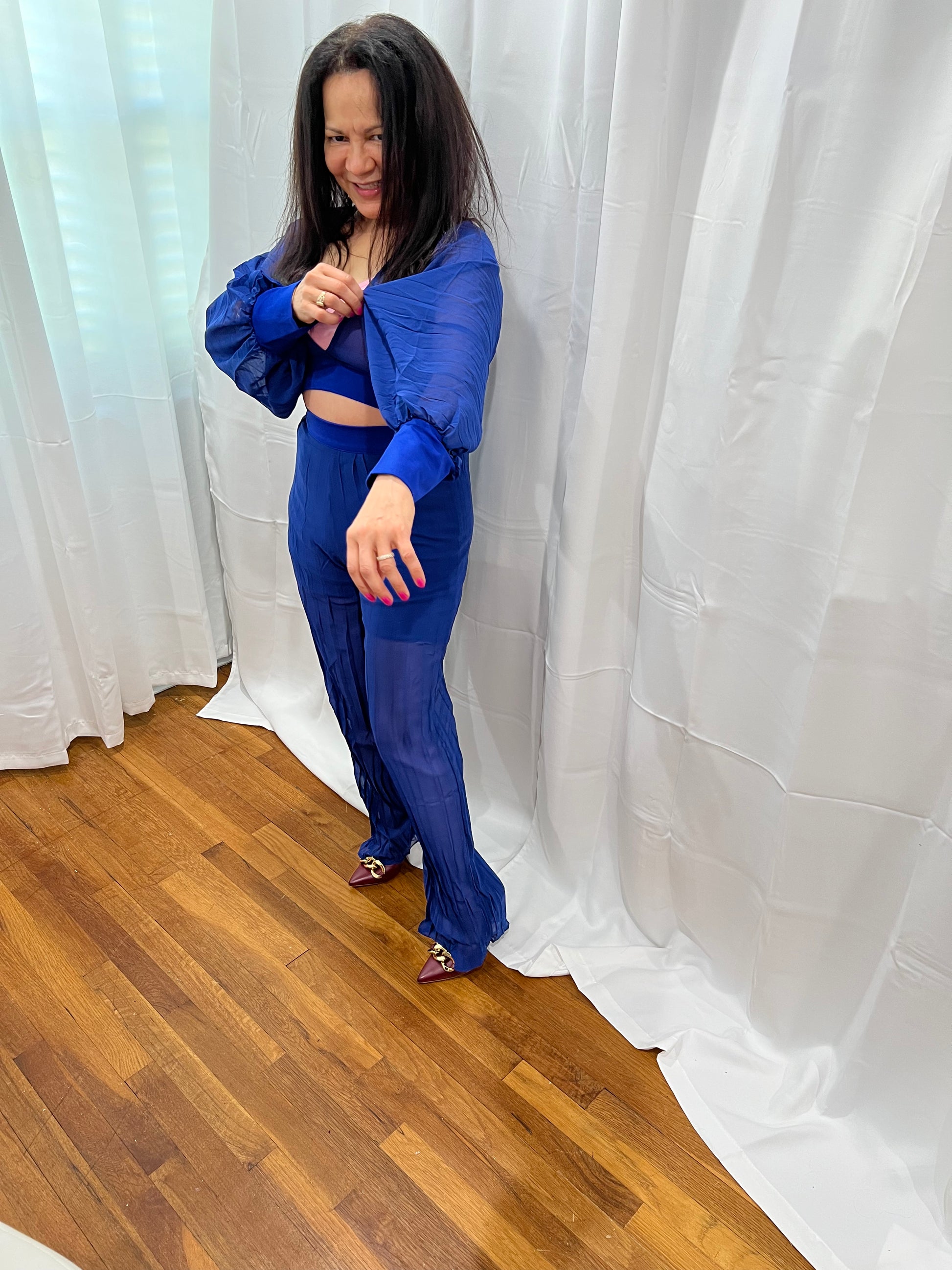 PANTS SET LONG . TOP LONG SLEEVES BEAUTIFUL, LIGH, SOPHISTICATED, MODERN, HIGH WAISTED PANTS. WELL FIT. TRAVELING A PLUS. SPRING, SUMMER, ALL YEAR AROUND.MUST BE IN YOUR COLLECTION! FIND YOUR LOOK!