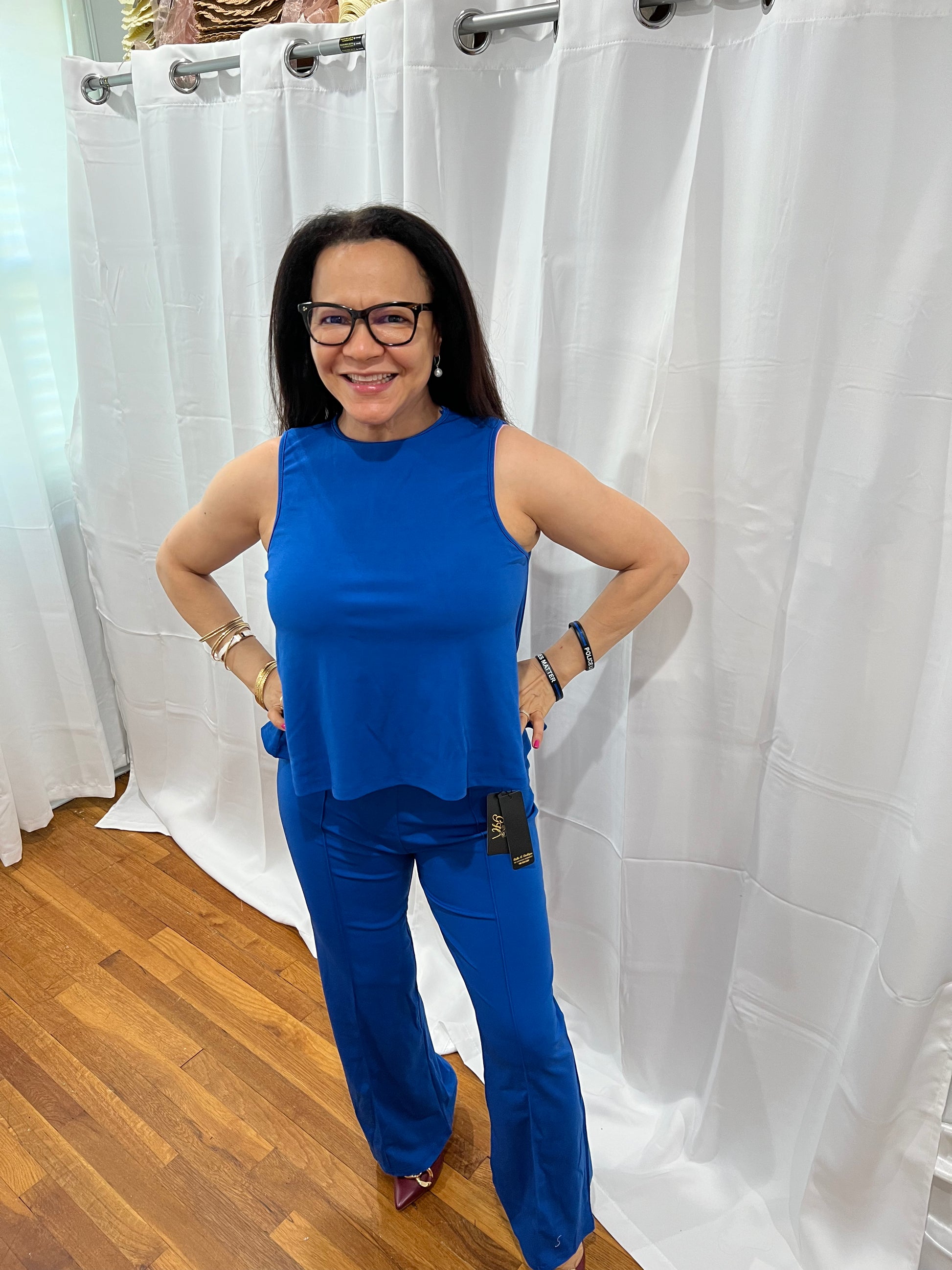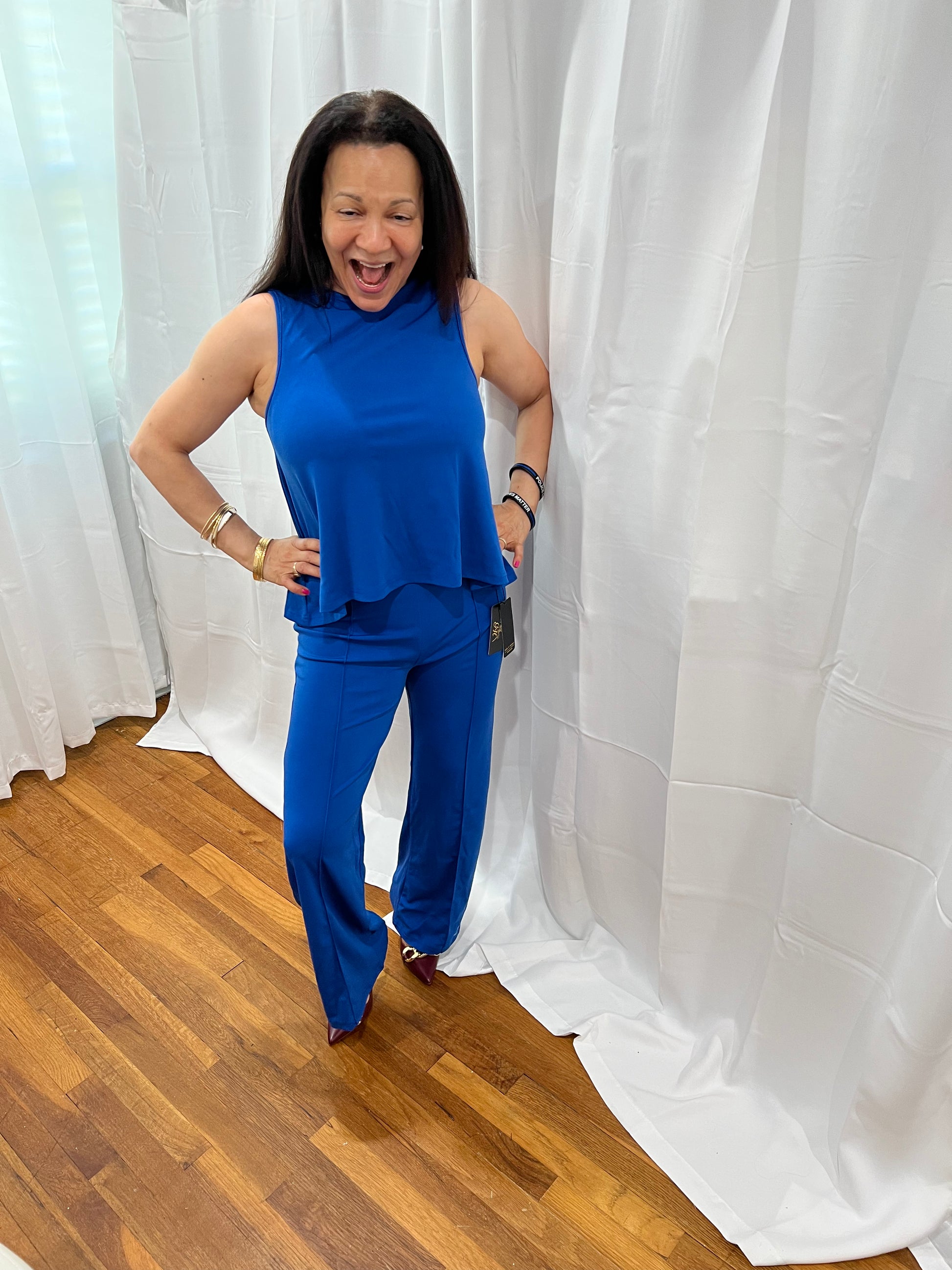 SETS OF LONG PANTS AND NON-SLEVEE TOPS. SOLID COLOR ELEGANT, CASUAL, AND FORMAL